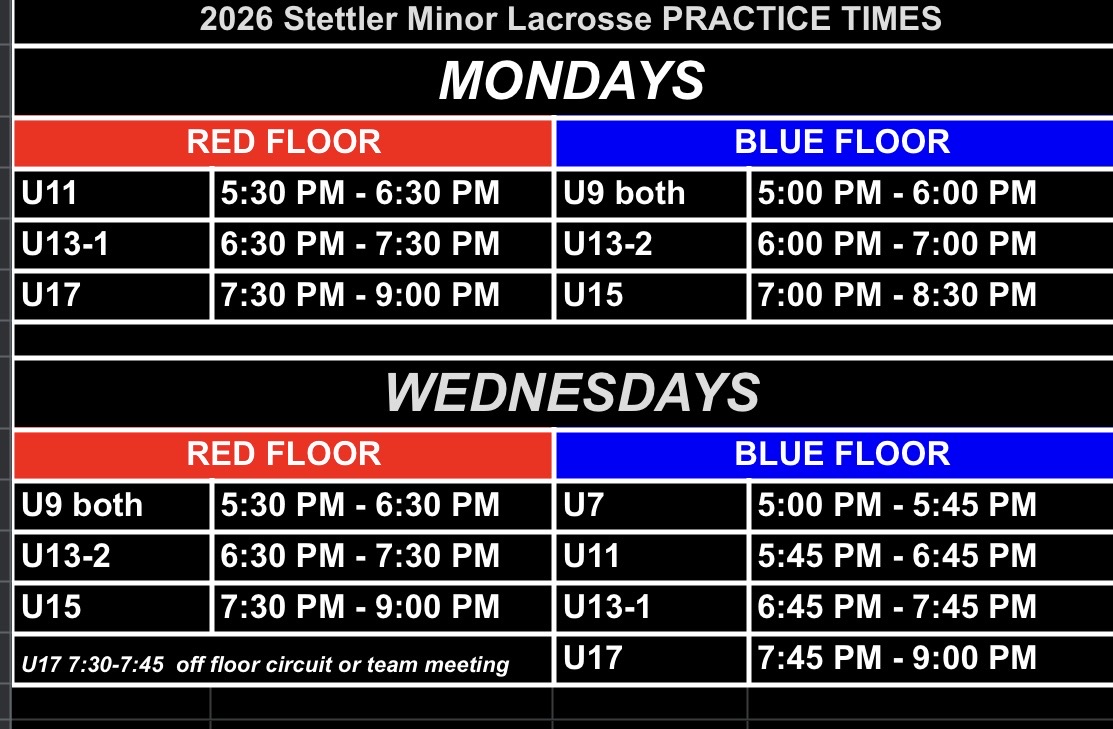 Please see above for regular practice schedule. For the month of April, please watch your emails from us on any changes due to sharing of floor with other sports teams and trade show.
